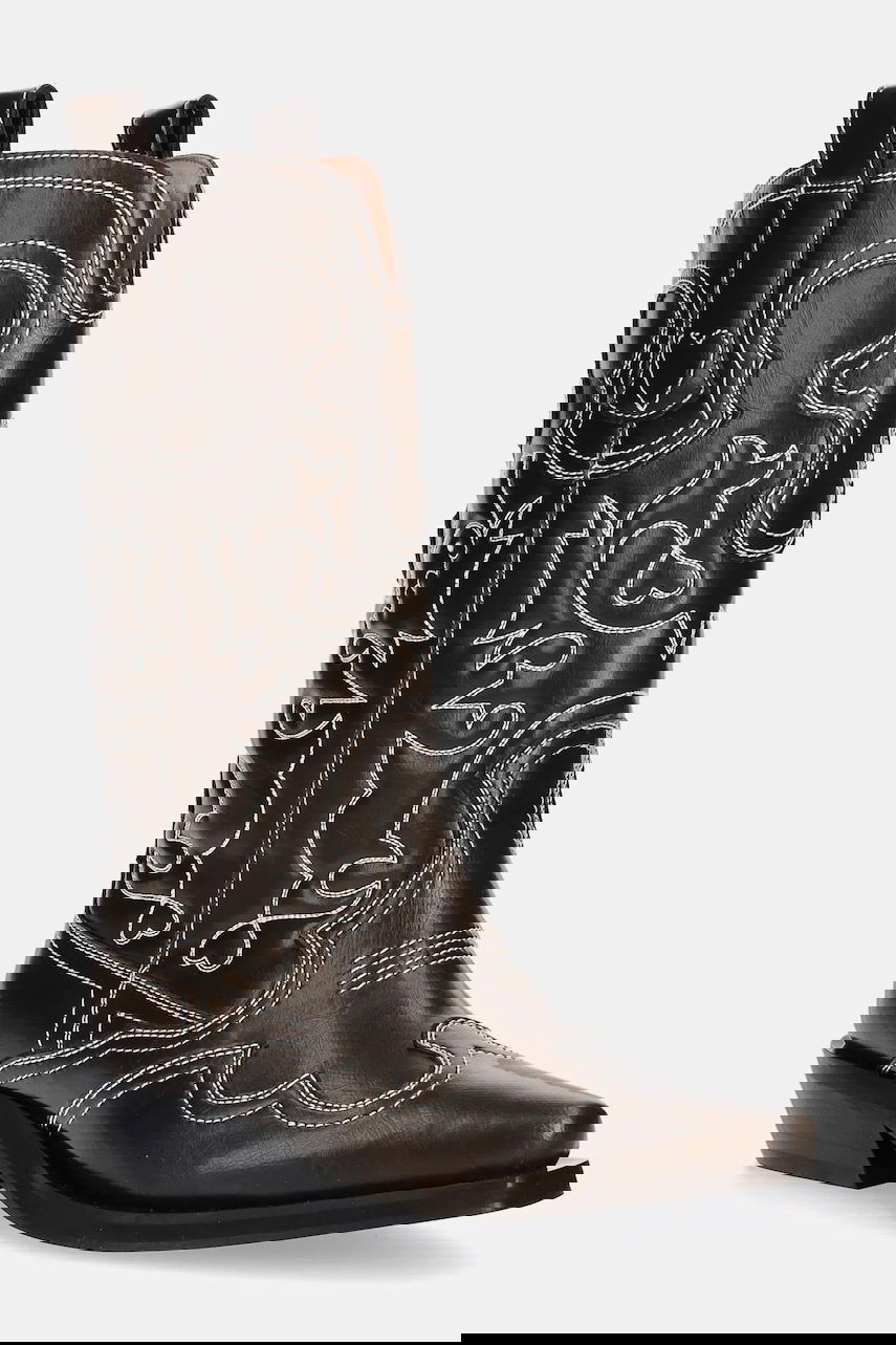 GANNI Mid Shaft Embroidered Western Boots