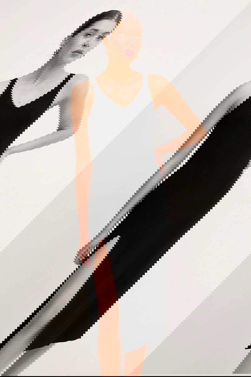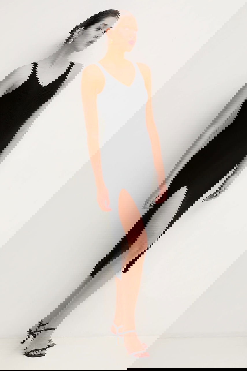 Lacoste Midi Knit Dress with V-Neck and Slit